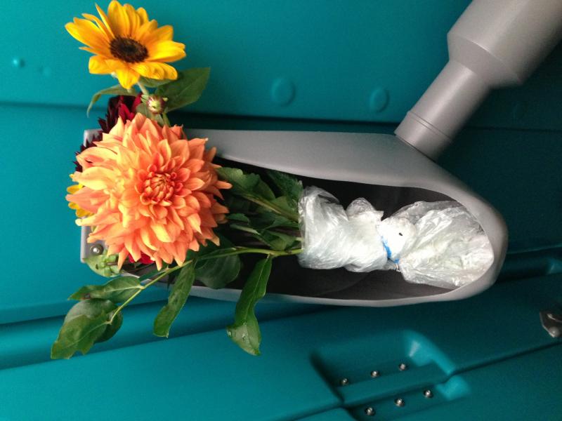 There were tons of ladies in great outfits - wigs and tutus and wacky socks and flowers...great fun to see everyone's creativity. At the first rest stop was a woman giving out flowers to attach to your helmet or bike, and so all along the rest of the ride there'd be an occasional flower on the ground that had fallen off of someone. It was like a breadcrumb trail! As long as you'd see a carnation on the ground now and again you knew you were still on the right route.