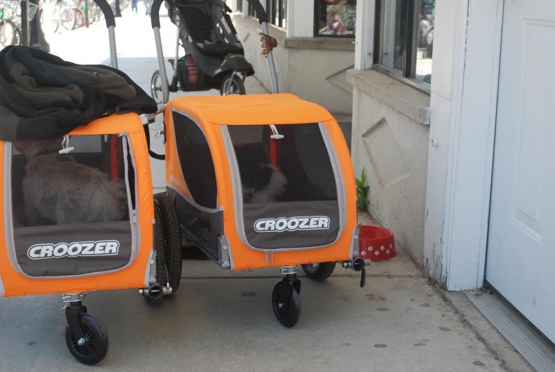 That's adorable, Sheila! I would still want a trailer for Paisley for shade, but this is a great way for them to be able to see what's going on around them too.