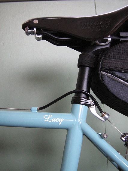 My DH gave me these name tags for my bikes for Christmas. Today I finally got one of them on one of my bikes! Here is how it looks: