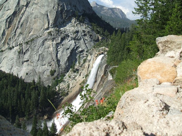 And finally, Nevada Falls from above....I like how the wildflowers sortof set the stage for the waterfall at this angle.... If you'll recall the shot in my above post of the waterfall through the trees, the bunch of trees I was in at that moment is waaaaay down there to the left in this photo.