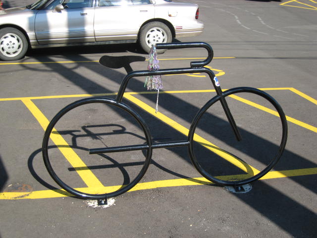 We hardly have any bike racks around here- so I can't take pictures. It's the reason I don't ride to the grocery store or to run errands- there's truly no place to lock my bike up securely. Too bad.![]()