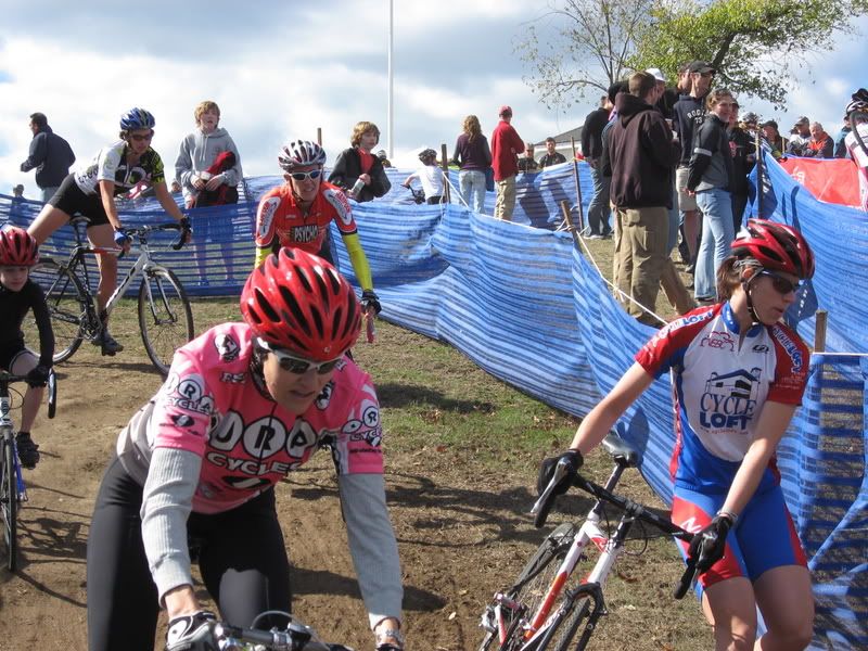 Here's another nice pix of you VS in your pink Jersey! This is at the barriers where I was completely CLUELESS on the first lap on how to approach that funky twisty run up crazy barrier section!