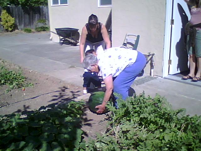 Pictured below Mom attempts to "dead lift" the pumpkin which ultimately my niece at left picked up.