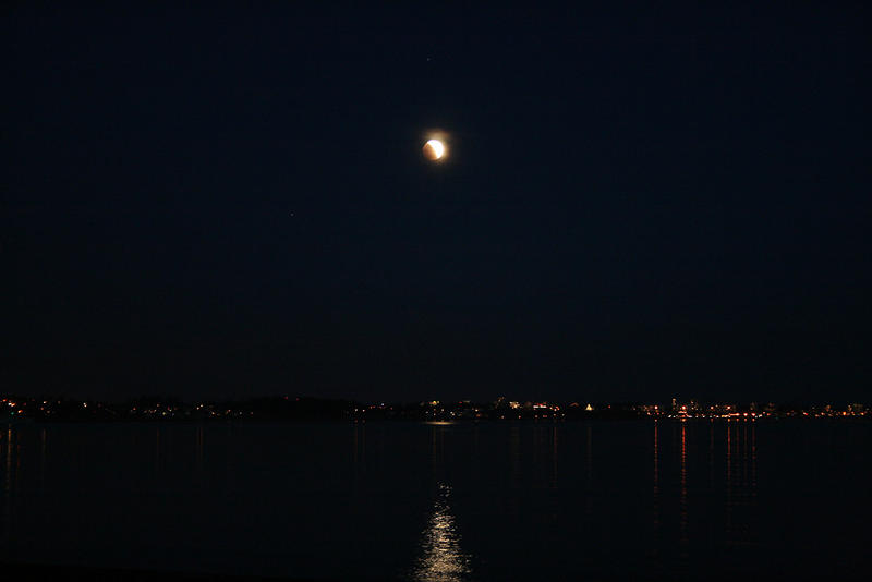 Ooooh...gorgeous right now! About 1/2 covered, and right now, still low enough in the sky for it to look HUGE!!