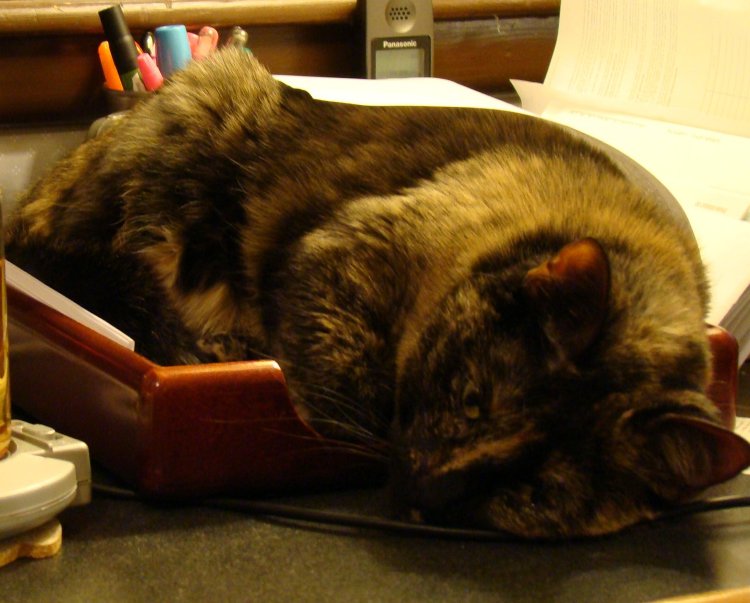 She was all over the keyboard. What the designers of that shelf missed is that cats want to be actually in your line of sight, not just nearby...