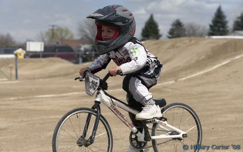 Anyway, check out this munchkin. I was shooting for the local paper and met this charmer. He's three, never uses his brakes, and deliberately goes slow because he doesn't want the race to be over!