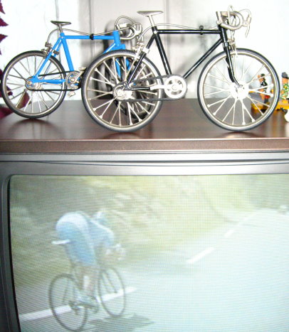 NO, this isn't exactly what you are thinking. To go in my bike-centric den with my Phinney jersey, Astana poster and wire sculpture, I bid in this on ebay: