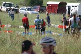 I couldn't use my big chain ring as I thought i had a problem. Keep on moving & try and get my speed up was my main thought. Legs going as fast as they could and just hoping i'd meet my time. Aha! Almost at the end & we are at the trotting track. AGGHGH..will my bike get me through this sand on the trotting track. Mozying it in, I was at the end. WAHOOOEEYYY!!!