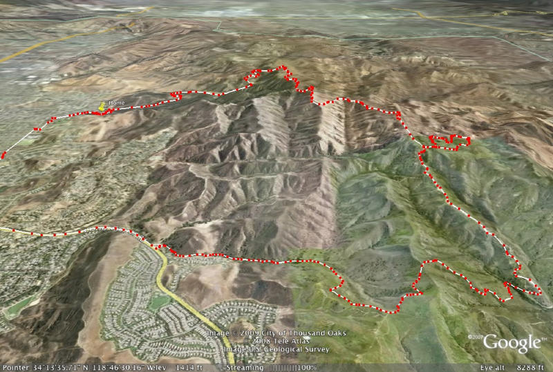 For all you roadies I will post a pic of my new bike soon. In the meanwhile here is a picture of the ride we took on New Year's. The trail starts at my house. The section to the left is about 6 miles on the street to get back home. We don't have many trees on our mountains. It's funny to see how some of the satellite pictures were taken when the hills were green.