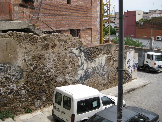 It was sprayed on a wall in a parking lot REI shared with a small art space (I think it was a little theatre):