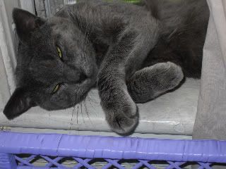 Shadow's picture doesn't really show how skinny he is. If he were to brush up against you or you were to look down at him you can see his spine and ribs. Hunter was underweight when I took him in but not like this. I've got an appointment to bring him to my vet. I will say this, for the small donation they requested of me, the vet that the TNR group used for the neutering did a lot for him (neutering, worming, Feline Leukemia test, FIV test, rabies vac, and a few other things). But I know they brough in a bunch of ferals to be spayed/neutered and there's only so much that can be asked of them.