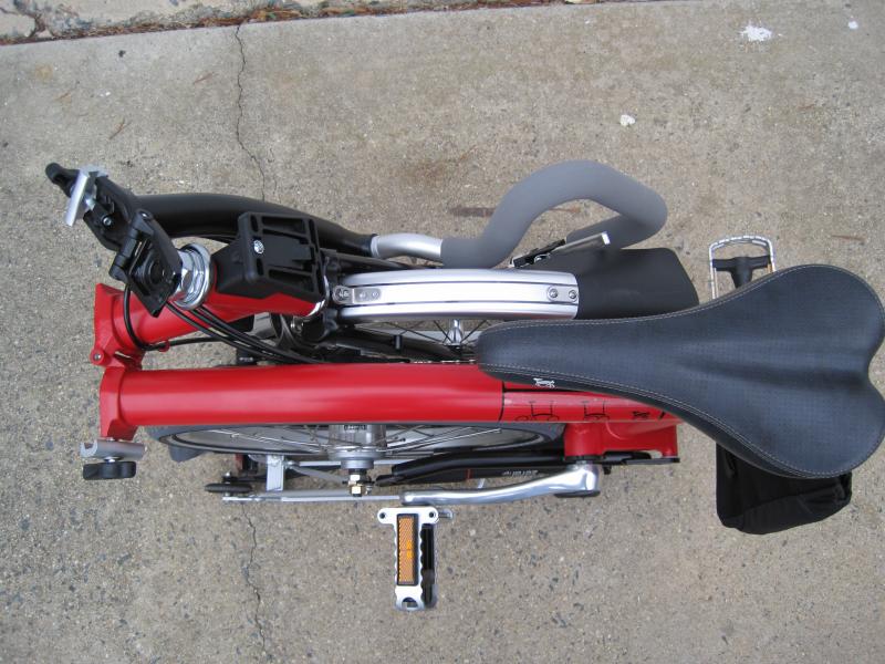 Second photo shows how compact the fold is and how the chain and derailleur are nestled inside the fold, not on the outside where damage might occur. The left pedal also folds in but I forgot to do so before snapping the shot.