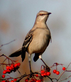 They don't have Mockingbirds up north, where I grew up and spent nearly 40 years of my life. When I moved to Florida, I quickly grew to appreciate these drab gray birds. You've heard the song "Listen to the mockingbird..." That is because what Mockingbirds do is sing. But not just any song; the Mockingbird knows up to 200 songs of other birds, amphibians, insects, and even mechanical noises. You can hear them singing before it is light out, and even after the sun has gone down. Sometimes a single male Mockingbird will sing almost all night, especially if there is a full moon! There is nothing better than having a Mockigbird pair in your yard. And if the singing weren't enough, there is the mysterious hunting behaviour. In the evening, the Mockingbird will alight in the grass. Then the bird will run forward quickly about five feet, then stop, with wings raised, pause, and repeat. This is now my very favorite bird, not counting pigeons.