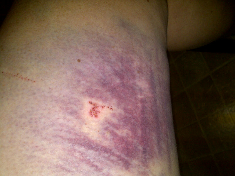 Ow. This is mine, about a week ago (taken the day after falling--by the next day or two after that it was even larger/darker):