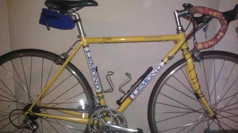 Found this 1998 Lemond Tourmalet on Craigslist last week....bought it yesterday for $250 ( I think I could have got it for $200 but hubby made the offer). It must have been meant for me though cause as I got out of the car to go look at it a $100 bill went blowing by my door. I must have looked crazy chasing itSo I guess I really got it for $150