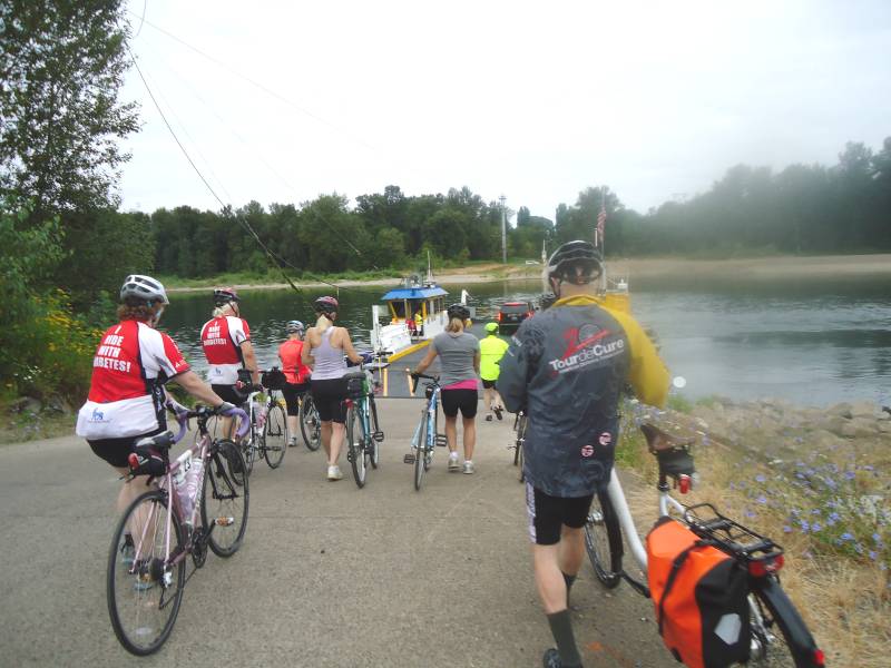 The Tour de Cure resumed Saturday training rides after two Saturdays of biking in the local bike club event rides. Today 55 cyclists joined together to ride in Vancouver, Washington. The longer route biked quite a few hills, and the shorter route was an out-and-back along the Padden Bikeway. After the rides there was a congregation of most cyclists at the Event Director's house for a backyard picnic. I wasn't able to attend because a rail on my Brooks saddle snapped, I had to take a SAG ride back to the start, and I drove off to get to my LBS for a fix so I can ride again tomorrow. :-(