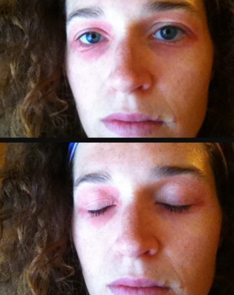 Random reply, and it's my eyes and inner eyelids that are itchy (not the outside...your photo looks so painful!) - but after having massive allergy attacks and sneezing for hours every Saturday after a long run, I think I have a pretty harsh exercise-induced allergic reaction. I thought all this time that my sweat was bothering my eyes, but I now think they get itchy and watery just from running, period. My ridiculously rainy marathon in Maine was the absolute only time I have finished a long run of any sort and felt just fine. So now it's MY turn to try and find an allergist.