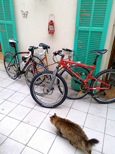 Lovely bikes and cats! I'm a bit partial to maine coon types (had two in my past); now I have a skinny black cat and a brawny gray tabby.