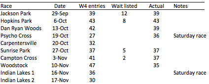 Just in case, I am not saying the women's 4 field should not be combined with juniors, rather than it should not be a free option for the parents of those juniors. Have them pay to secure a spot. I just put some of the numbers from the Chi Cross Cup women's 4 field for your reference (the combined field with juniors is 100):