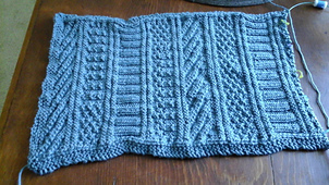 It is an easy pattern that groups series of knit and purl stitches in repeats. I can even work on it while watching (well, listening) to a movie. I just learned how to knit 3 months ago as an alternative form of hand therapy for some pretty severe arthritis. It has done wonders!