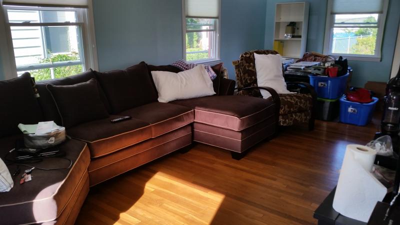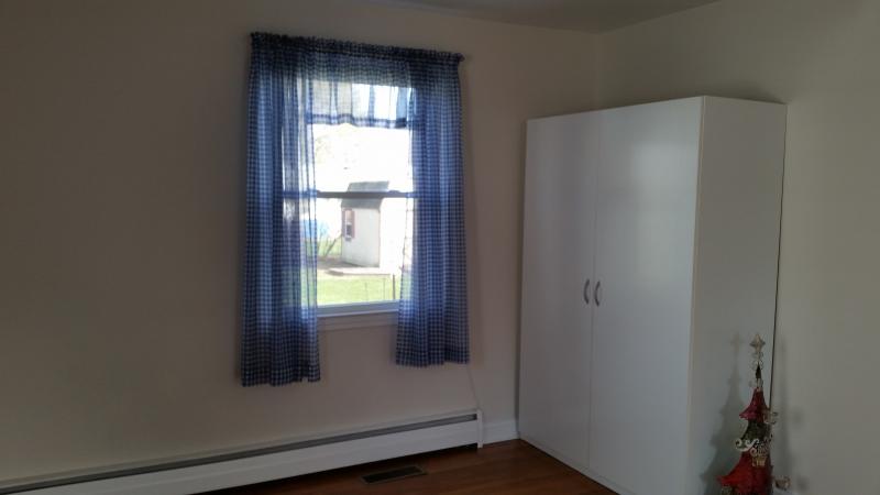 The far end of the living room, with the wardrobe removed and put in the basement: