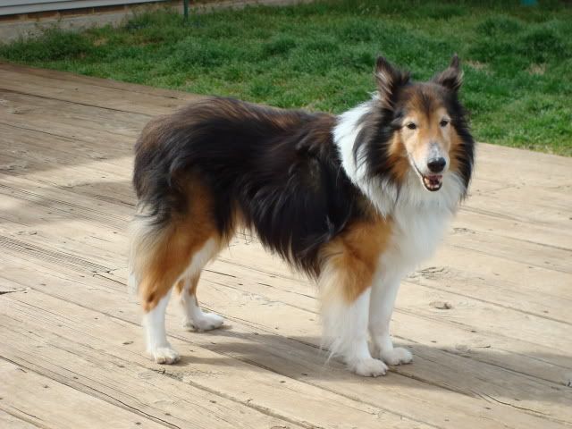 We recently adopted this little senior citizen sheltie boy who is a special needs dog. He had been sitting in a shelter for a month when a Good Samaritan saw him and promptly moved him into a rescue. He was terribly underweight (14 lbs!) had a bad tooth and was very stressed. Hubby saw him on Petfinder and fell in love with him. His hearing is almost gone and he has vision loss in one eye but to us that makes him even more special. He just had a cancerous tumor removed and is doing very well. From the very start he fit right in with Niki and Kali and it was as though he had always been a part of our family. We love him even more with each passing day.
