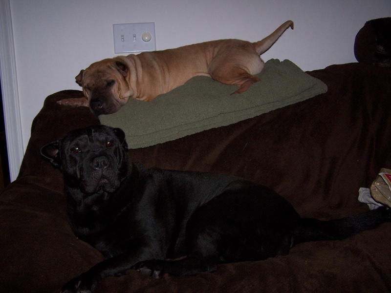 The other day I was sitting on the couch with my big girl, Bailey, Shar Pei laying next to me. I realized that the new Pei, Beau, was not in his usually spot on the chaise, or on the floor or on the bed, and I began to panic. Where did he go??? I got up and there he was, perched on top of the back of the couch, snoozing life away...Gotta love the fur babies...