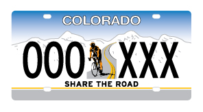Texas has one too, it says "Share the road, y'all." (it looks like Lance and his yellow jersey are on it, too.) I have thought about getting one, but for me it's a toss up between the bicycle one and the animal one, which has a cartoon of a dog and cat and it says "Animal friendly".