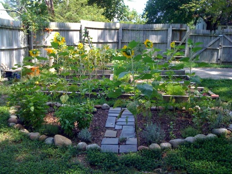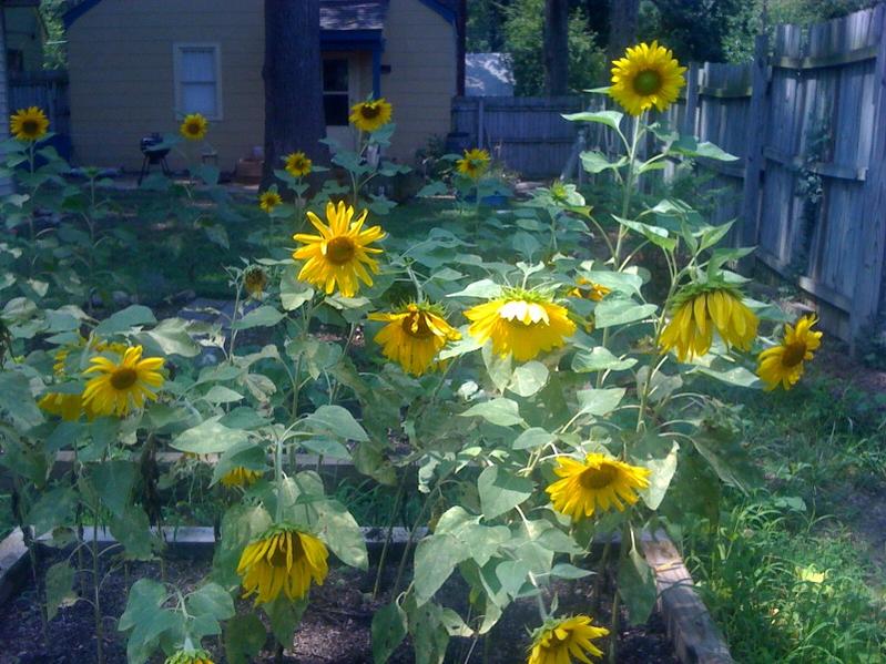 The sunflowers are kindof all over, but I like them that way. And the melons, squash, and pumpkins have taken over, too.