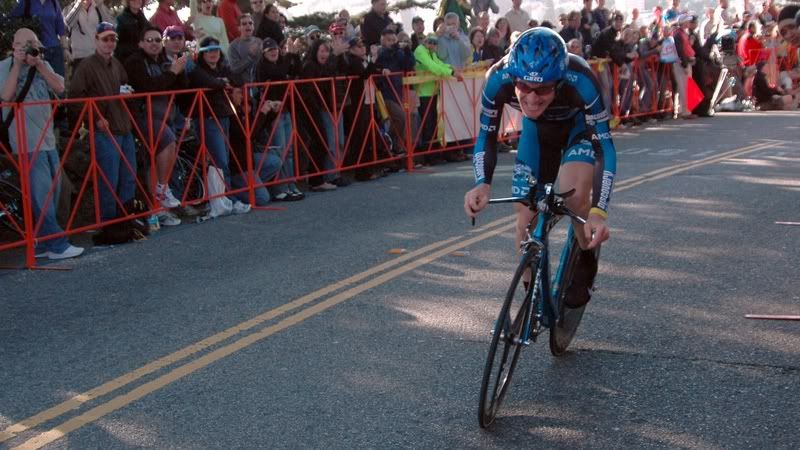 This one is a little dark... I haven't had time to futz with it yet. But here is DZ getting ready to go down the steps on Telegraph hill after his ride. Just after this he picked up his bike by the seat and threw it over his shoulder and said no to any help from the tour helpers (he was one of very few riders who said no to help)