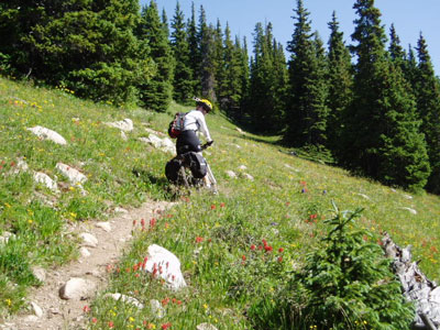 This is one of my favorite days of riding, we did a self-supported mountain bike tour of the Colorado trail a few years ago (still have some of the distance to finish). It took some time getting used to having the rear panniers on some of the singletrack, but I loved the meadows becuase there was always plenty of room for my panniers and the wildflowers were amazing. Enjoy!