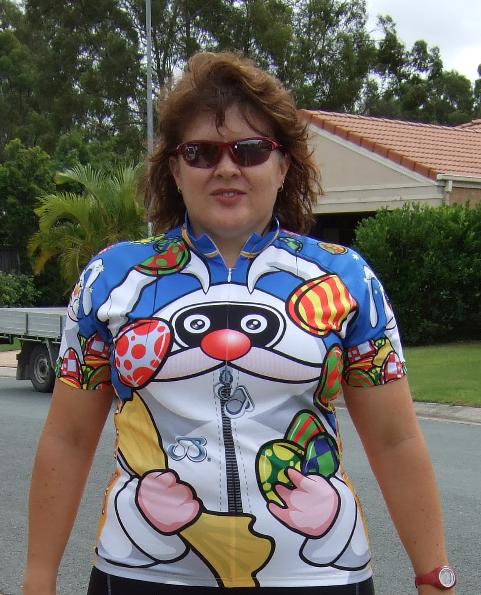 I've attached a pic of me at Easter in my bunny jersey (before I put my helmet on - complete with ears - and a tail on my cute pink furry toolbag from TE). It was quite a hit wherever I went.
