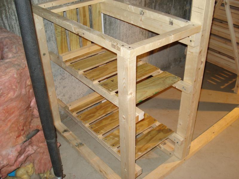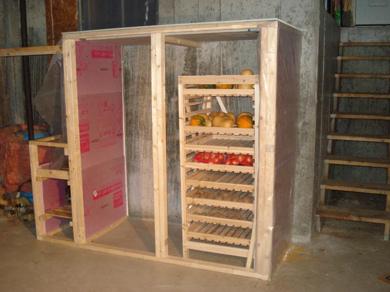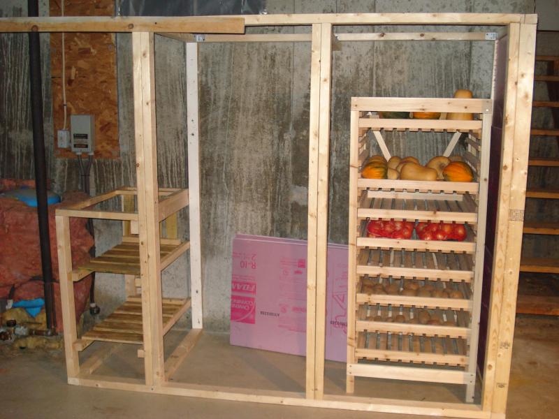 Next to that, not in pictures yet, I am going to make apple storage. I am keeping the apples seperate because the ethylene gas that they give off will prematurely ripen other vegetables that are near them.