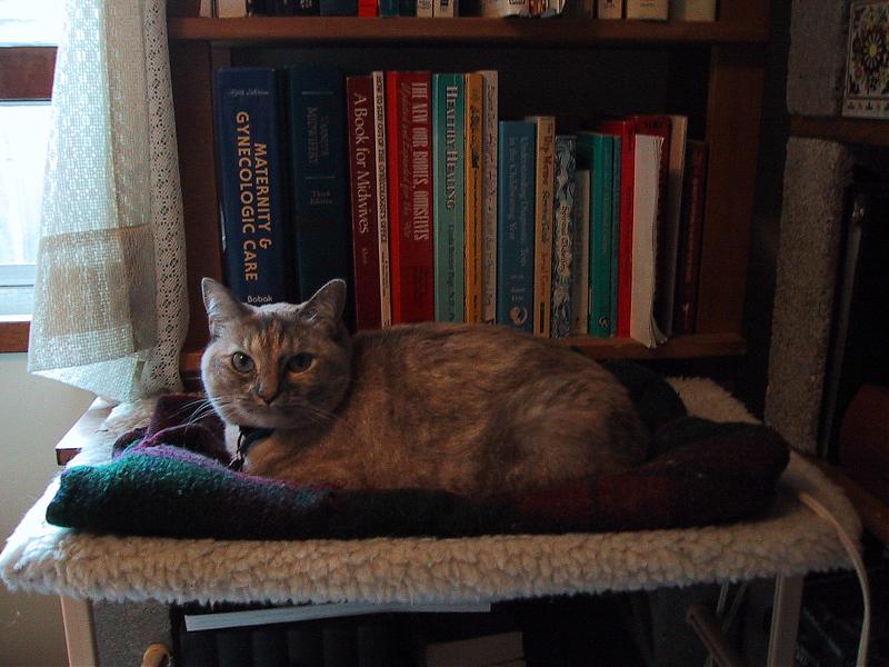 She's part siamese, so she likes to follow me around the house while expressing all her concerns and dislikes. Her nickname is Complaint Department. She is on her dais in this photo, we all worship her from there.