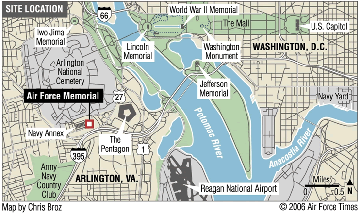 The book has has another route that goes around Arlington that is on the Mt. Vernon trail. Anyone know if that trail goes by the Air Force Memorial?