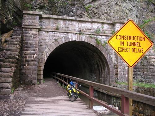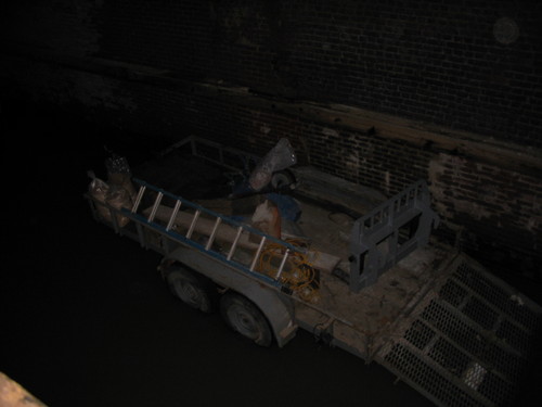 Here's what the tunnel looked like a couple weeks ago. There were actually workmen lolly-gagging around outside the west end, and some vehicles parked inside.
