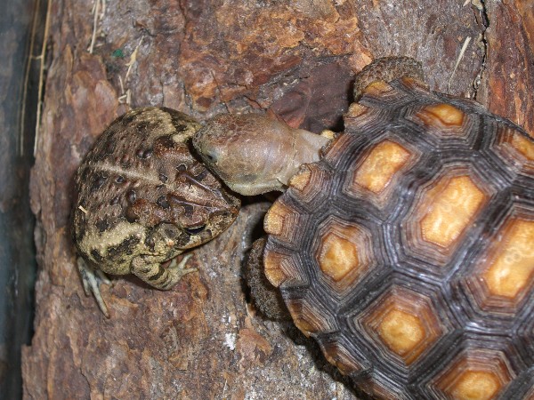 Choco just shed, so I don't know what his problem is...Maize is fine. This little "cuddling" incident actually made me a little nervous tonight- it almost looked like Koko was going to take a bite out of Mr. Toad. But he didn't. Buttercup, who has been a reluctant eater all summer, has turned into a little porker now that she is stuck eating "bad" grocery store produce rather than healthy weeds that she grazes for herself (due to the weather). Fagalo woke up a couple days ago, and I fed him a couple nightcrawlers and soaked him, and weighed him (gained four grams in brumation!) and sent him back to sleep in his hibernaculum...
