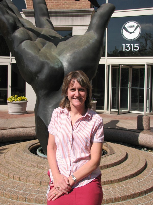 The biggest ol' hand is in front of MY office building! Here's the land mark for my office (ignore the person in the pic, I just don't have a pic of the hand, solo). While you can't see the birds above it, it's supposed to represent a meeting of land and sea, or man and nature, or something.... Note...it's also a non-functioning foutain. I think that's telling in a way.