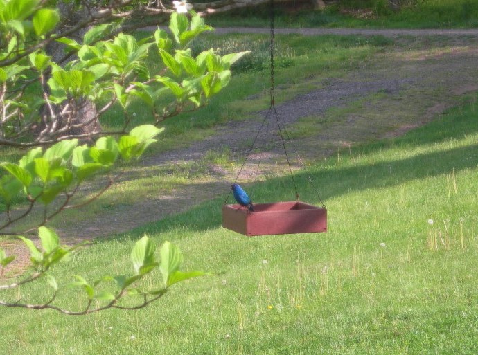 Just took this picture outside my breakfast room window (where I am sitting right now). Indigo Bunting....isn't he pretty?