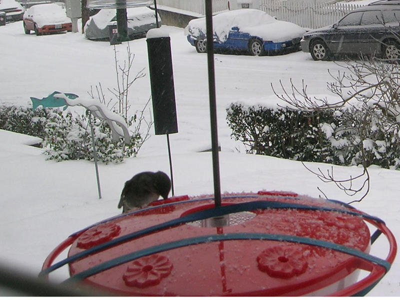 Oooh, hummingbirds in the snow! Would never happen where I live!