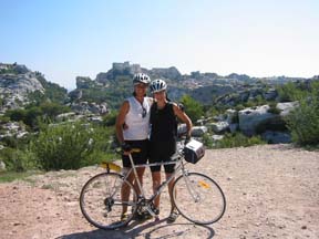 Another picture of yourself or your ride? my partner and i (right) on our incredible trip biking tour thru Provence. rental bike. the hill-top town of Les Baux in the distance