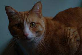 The big orange guy is Koji, we found him when he was about 6 or 7 weeks old. He was hanging around outside yowling frantically for his mom. I ended up tracking down where he slept to catch him. He was terribly afraid of people at first. He crawled into the base of our pedestal sink and wouldn't come out until I fell asleep on the bathroom floor. He came out and fell asleep with me and has considered me his mommy ever since.