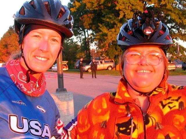 Mary--you witchy-poo cycling diva, you! Love the regalia, esp. the helmet-top spider and that Halloweeny vest you're wearing. I'd ask where you got that gorgeous vest, but you probably stitched it up yourself.