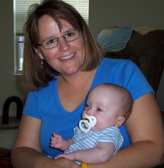 You know, I really hate the expression on my face in that picture, so just so you can picture me "right" here's a better one. lol. (But I wear contacts, now.) That's my grandson when he was 4 months old. He will be 2 on Wednesday.