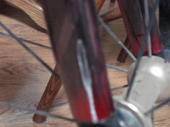 I have close to 200 miles on my new Specialized Ruby Pro and last night I notice two relativiely big scratches on both front forks. Do they make touch up paint to fix her? I can see the bare metal. Should I use nail polish or do nothing. I know bikes get scrathes if you use them, but I would like to take the best care of this investment as I can. Any advice is appreciated.