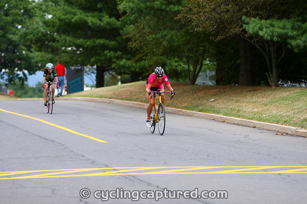 It was a crit in the Lehigh Valley. It was tough for a crit, with two big hills and a descent that allowed us to hit 43+ mph! The race started out relatively controlled...with everyone sticking together for the first couple of laps. After about 4, the group started to splinter a bit and I realized I was in a break of 7 women. A few laps later, we lost one of our seven and the 6 of us were together for the rest of the race. There were a few preme laps, but no one really attacked. On the final lap, one woman attacked on the first big hill. I followed, but didn't counter attack...we were still a ways from the finish. At the bottom of the final hill, I started to charge. I caught her at the top and pulled ahead to the finish line!
