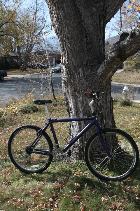 In August someone broke into our garage and stole my sister & my mountain/commuter bikes (we are roommates) and since she was just at the point of quitting her job and going back to school we had no spare $ for replacements. Amazingly, friends and co-workers offered us some great free bikes that, though being in need of some love and repairs, kept us pedaling. I purchased a new MTB a while later & decided to fix up one of the bikes for my mom. It's an old Giant MTB (we named her Gayle) which I thought would be good for my mom at least in the gearing, since she has bad knees.