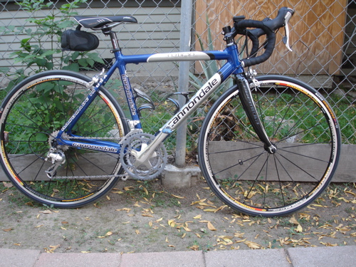 I could write a novel about how I rode her and rationalized it and thought about it every day for two weeks, but instead I'll skip to the good stuff! I got her wedensday and I've only had one ride with her, a fast 25 miles. It was amazing! Such a step up from my old bike, a bottom of the line Dolce. She was a good first bike to get me hooked and she will have a home on the trainer. I keep thinking as much as I hate work getting in the way of riding I do need my job to pay for my bike habit. However tomorrow we're going to play ALL DAY!!!! I can't WAIT!!!