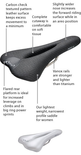 ), put it on today and rode with it. I was wearing my Terry shorts and expected the saddle to reduce slippage since as you will see (hopefully) with the picture below the "new carbon check textured leather helps hold you solidly in place" - and let me tell you that's an understatement!!