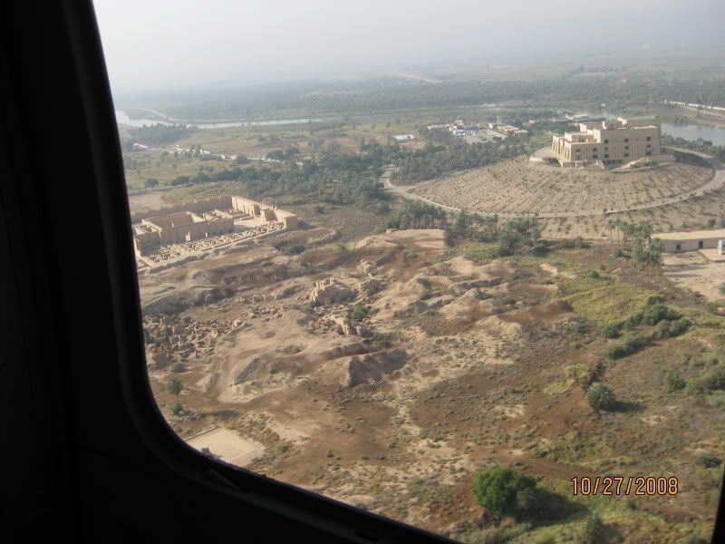 Forgive me, but I had to share a photo my dh sent me today from Iraq. It's my favorite photo I got today, excluding the ones that have him in them.He was flying over the ruins of Babylon (on the left) and one of Saddam's palaces (on the right). It always amazes me to think of the deep history in this part of the world. Anyway, just thought it was a nice photo.